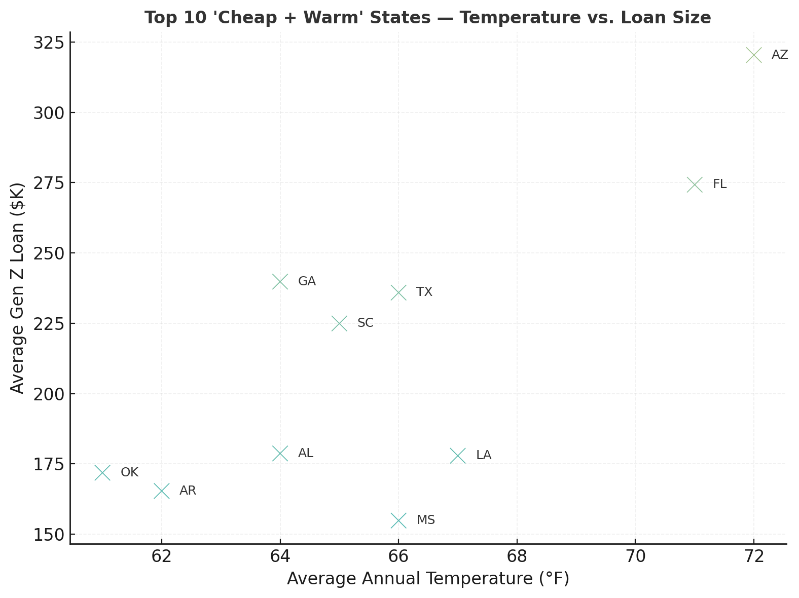 Arizona earns its place for pure warmth appeal. While loan sizes are higher than in the Deep South, abundant sunshine (close to 300 days annually) and expanding employment hubs like Phoenix and Tucson make it a magnet for Gen Z buyers seeking both heat and affordability.