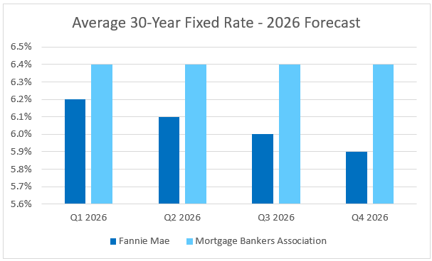 In their December rate forecasts for 2026, Fannie Mae predicted a gradual, linear decline over the course of the year while the Mortgage Bankers Association expects a plateau.