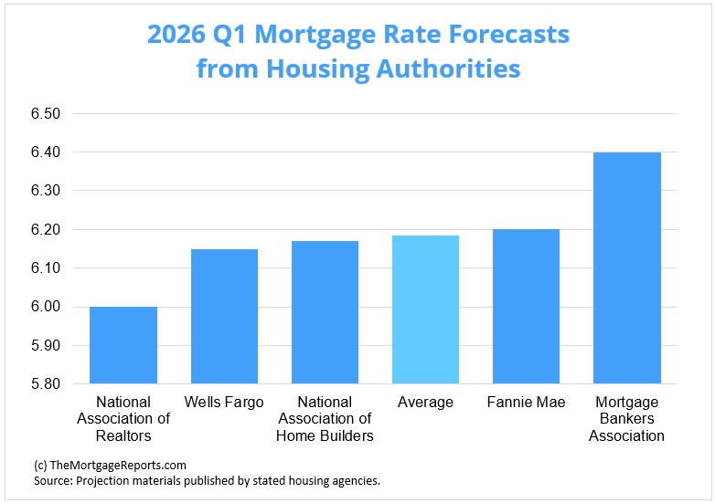 The 30-year fixed-rate mortgage averaged 6.21% as of Dec. 18, according to Freddie Mac. Four of the five major housing authorities we looked at predict 2026’s opening quarter average to finish below that.