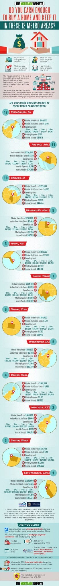The Mortgage Reports recently analyzed 12 large metros in the United States to see how median home prices differ, and what that means for down payments, mortgage payments and property taxes.